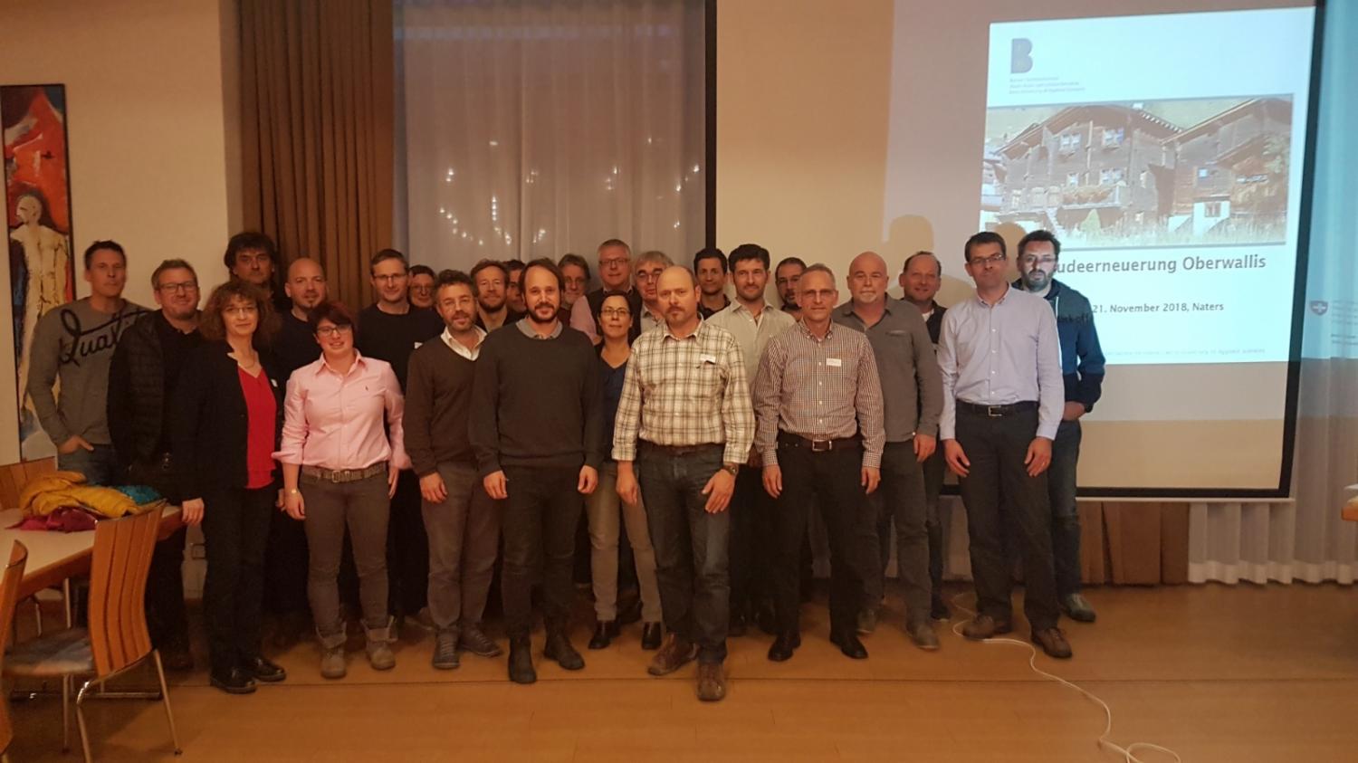 Am 21. November fand der Kick-off des Innosuisse-Projekts „Gebäudeerneuerung Oberwallis“ statt. Das Projekt in Zusammenarbeit mit der Berner Fachhochschule, fünf nationalen und zwölf regionalen Wirtschaftspartner wurde von Innosuisse (Staatsekretariat für Wirtschaft SECO) im Mai dieses Jahres bewilligt. Der Projektumfang von knapp über 1 Mio CHF wird fast zur Hälfte von den Wirtschaftspartnern in Form von Eigenleistungen und einem Cashbeitrag mitfinanziert. Ziel des Projekts ist ein abgesicherter, technischer Leitfaden für die fachliche Beratung bei der Sanierung von historischen Gebäuden in Dorfkernen. Dadurch sollen die Planungssicherheit für alle Beteiligten verbessert und die Kosten für Eigentümer gesenkt werden. Darüber hinaus ist ein kurzer Leitfaden für interessierte Bauherren geplant und ein Forschungsbericht, den die involvierten Wirtschaftspartner für ihre eigenen Zwecke nutzen können. Die regionalen Wirtschaftspartner im Oberwallis haben sich zur ARGE Dorfkernerneuerung zusammengeschlossen, um projektbezogene Ergebnisse aus der Zusammenarbeit nachhaltig zu nutzen. Mit Hilfe dieser Inwertsetzung soll lokale Wertschöpfung generiert und nicht zuletzt Arbeitsplätze erhalten bzw. geschaffen werden.