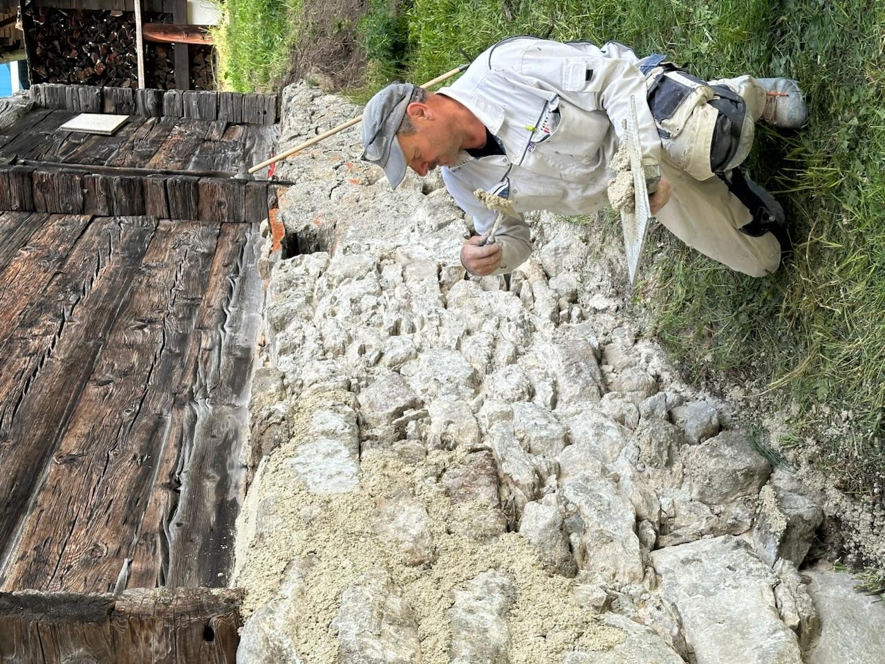 An der Fachwerkstatt vom 30. August in Münster stellte Architekt und Bauherr Roman Hutter dem interessierten Publikum das konkrete Umnutzungskonzept des Von-Riedmatten-Stadels vor, der 1646 erbaut worden war und heute ein historisch wertvoller Zeitzeuge ist. Holzbauer Ulrich Weger erläuterte den Anwesenden die statischen Sicherungsmassnahmen am Holzbau. Willy Jossen, Handwerker in der Denkmalpflege, zeigte die praktische Anwendung eines Naturkalk-Lehm-Grundputzes mit Hanf.