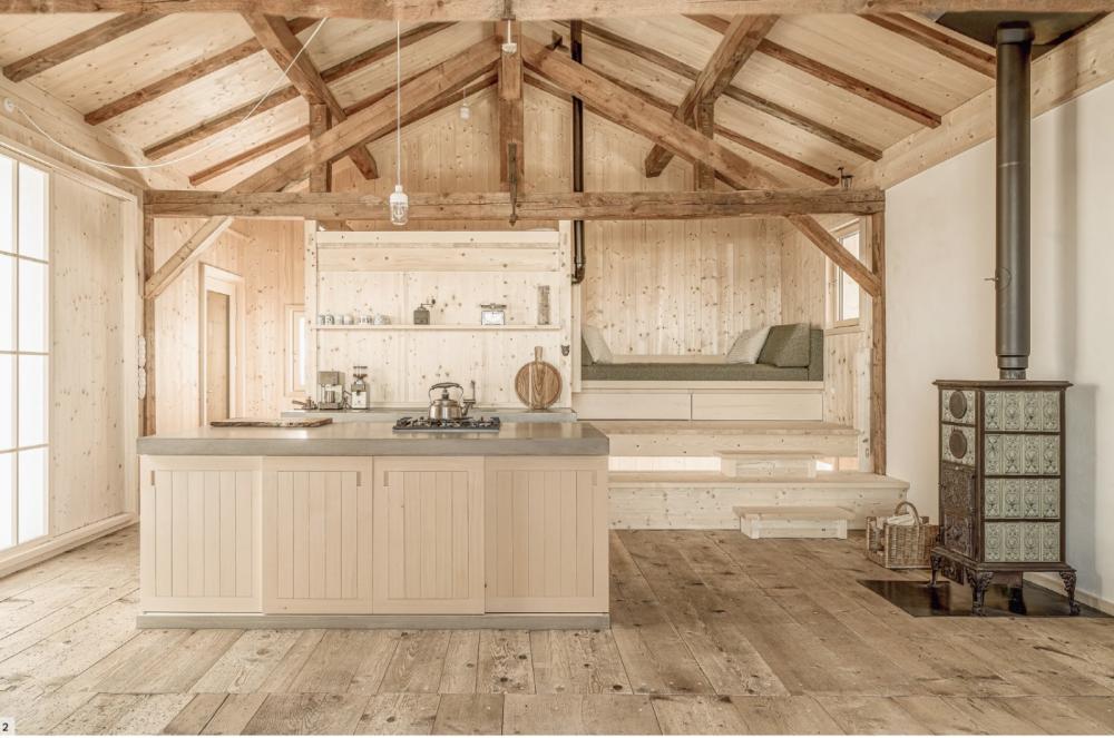 Der kleine Stall steht im bündnerischen Obermutten, einer einstigen Walsersiedlung oberhalb von Thusis, die bis heute ihren ursprünglichen Dorfcharakter bewahrt hat. Mit viel Handwerkskunst und Gespür im Umgang mit dem baukulturellem Erbe haben unsere Vorstandsmitglieder Stefan Höhn und Salome Fravi von hûs Architektur und Handwerk GmbH einen der letzten Ställe im Weiler Obermutten auf 1846 m.ü.M. zum charaktervollen Ferienhaus umgebaut. Aus dem einstigen Ökonomiegebäude mit Stall und Heuboden ist ein vielseitig nutzbarer Wohnraum für Feriengäste entstanden, der schlichte und praktische Eleganz vereint und dennoch Behaglichkeit verströmt.